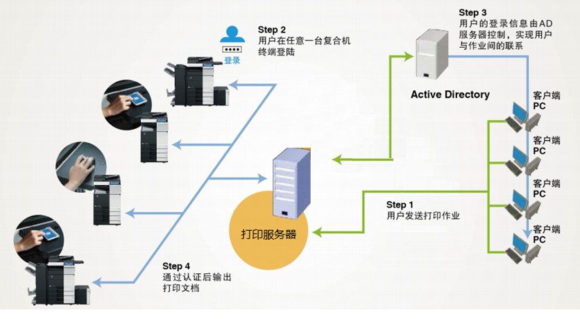可以在系統(tǒng)中的任意一臺(tái)打印機(jī)上刷卡出紙